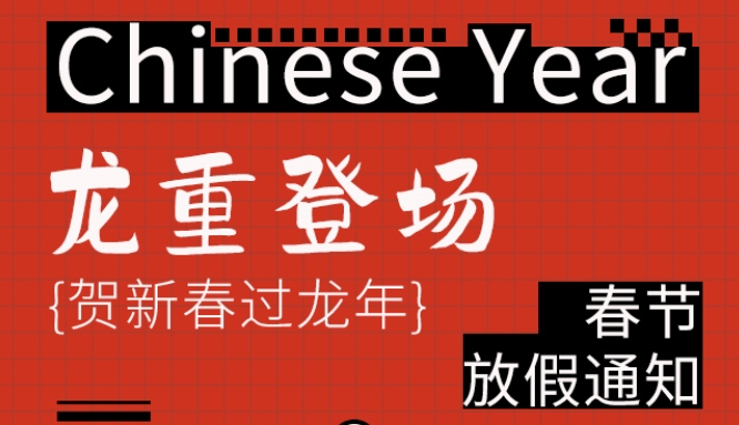又是一年新年到,惜别2023,喜迎2024,在此向大家拜个早年!预祝大家新年快乐,财源广进!为了欢庆传统的新春佳节,根据国家规定,我司春节放假于2月6日放假,2